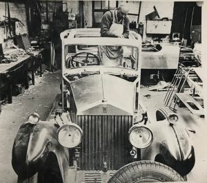 Harold Harrington born in 1919 started his career as an apprentice coach builder back in the 1930s after approaching Albert Wilkinson owner of Wilkinson’s garage at the time. Initially, Harrington was trained as a coachbuilder and glass cutter, although his work soon changed to converting cars such as Rolls-Royces to ambulances, building breakdown lorries from R-R cars and mobile libraries for the war effort.