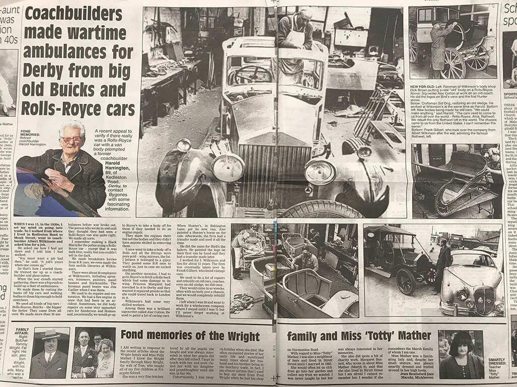 Harold Harrington born in 1919 started his career as an apprentice coach builder back in the 1930s after approaching Albert Wilkinson owner of Wilkinson’s garage at the time. Initially, Harrington was trained as a coachbuilder and glass cutter, although his work soon changed to converting cars such as Rolls-Royces to ambulances, building breakdown lorries from R-R cars and mobile libraries for the war effort.